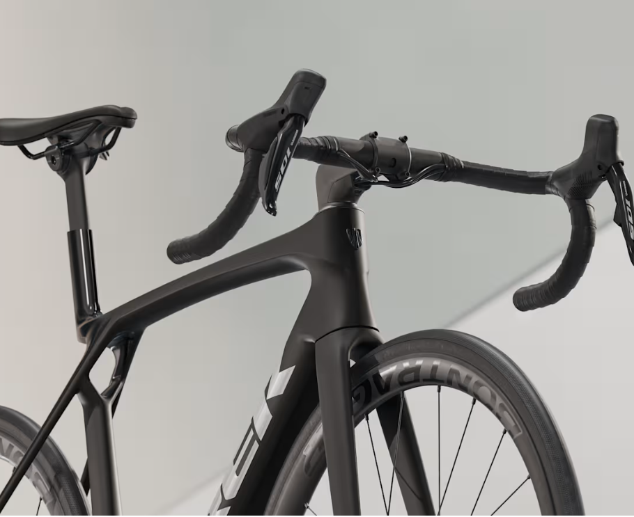 De Madone SL 6 Gen 8 is een lichte aero racefiets die topklasse racetechniek biedt voor een iets aangenamer prijskaartje. Hij heeft dezelfde aerodynamische voordelen als de duurdere Madone SLR Gen 8, maar is gebouwd met een iets voordeliger OCLV 500 Carbon layup en een tweedelige cockpit met verborgen kabelgeleiding. Hij heeft een racegeometrie die zorgt dat je comfortabel kunt klimmen, maar ook op scherp staat voor een demarrage. De Shimano 105 Di2 elektronische groepset houdt de prijs acceptabel zonder dat je hoeft af te zien van dat razendsnelle elektronische schakelsysteem. Bovendien heeft hij fraaie lichte carbon wielen voor nog betere prestaties.